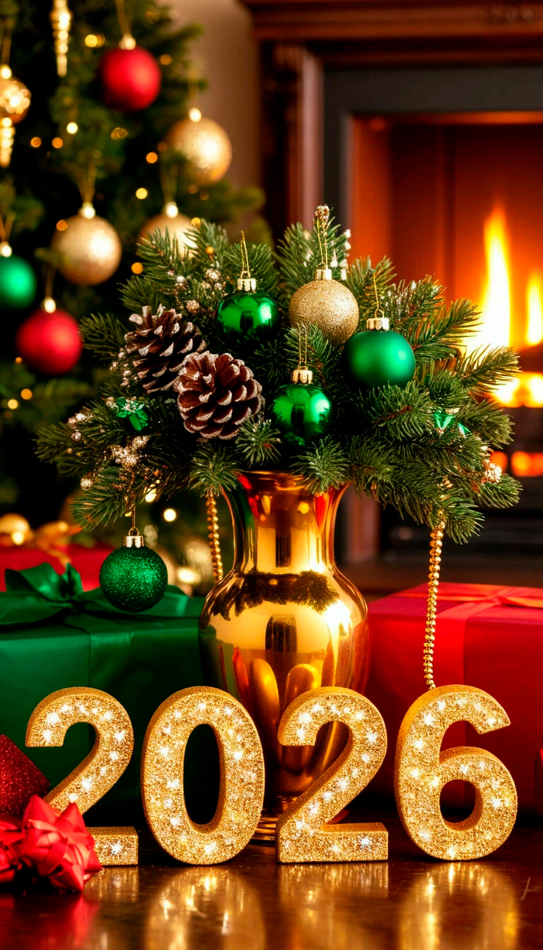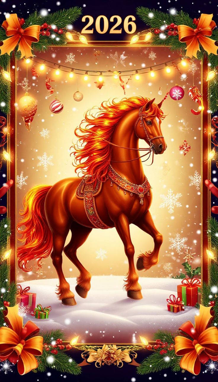 Поздравление с наступающим Новым годом символизирует ожидание обновления, надежд и положительных перемен. Указание года — 2026 — делает открытку актуальной и подчёркивает внимание к деталям.